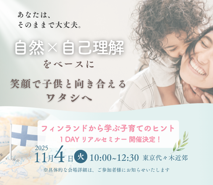 フィンランド流の「自然とのつながり」を通して心をリセットし、「私はこれでいい」と感じられるようになることで、子どもにも安心が広がります。